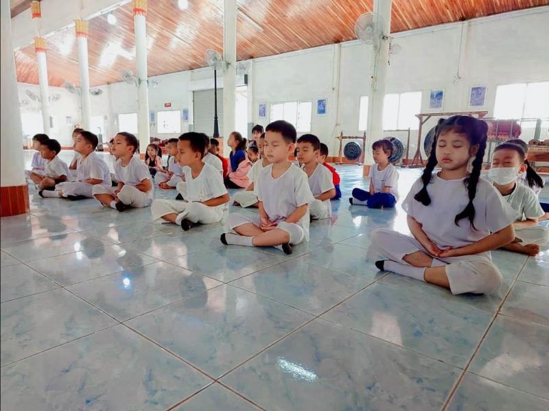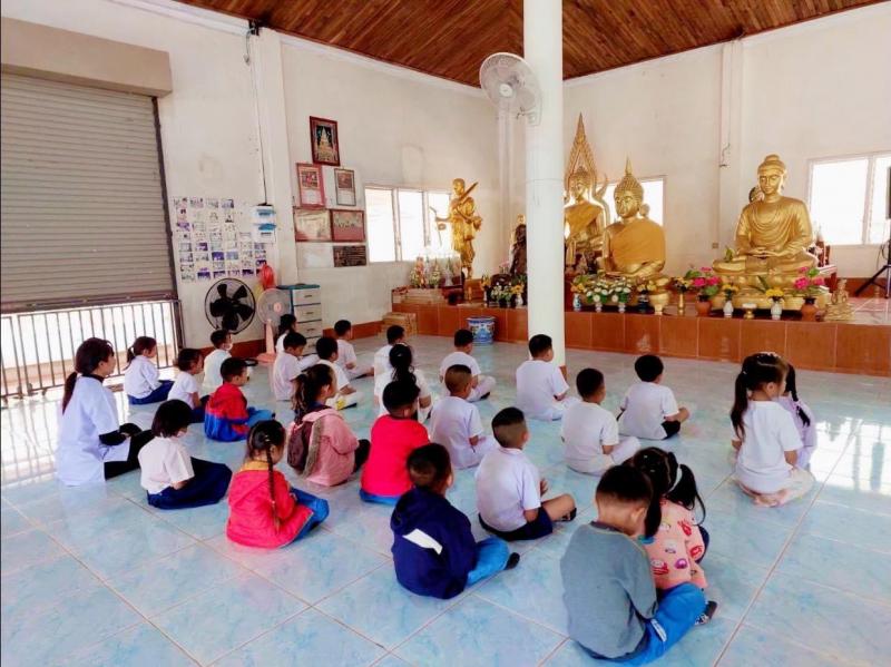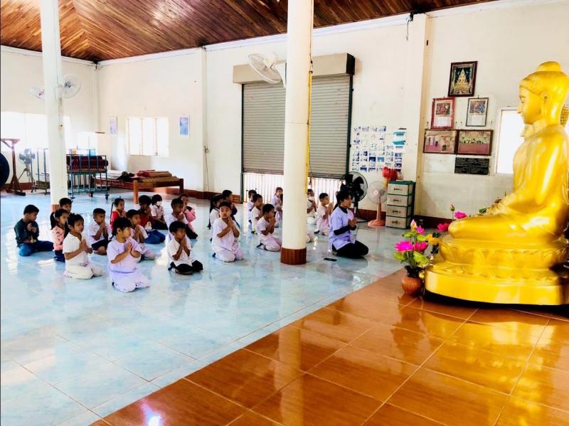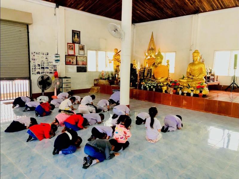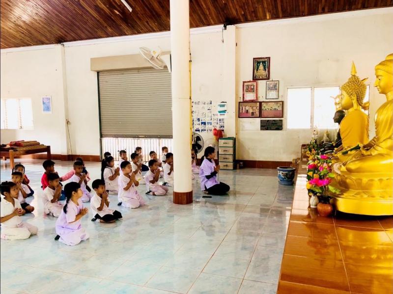 กิจกรรมการส่งเสริมคุณธรรมจริยธรรม โดยการพาเด็กไปสวดมนต์ไ หว้พระ ฟังพระเทศน์ ฟังธรรม และนั่งสมาธิ ณ วัดป่าวงศ์พนาวัลย์