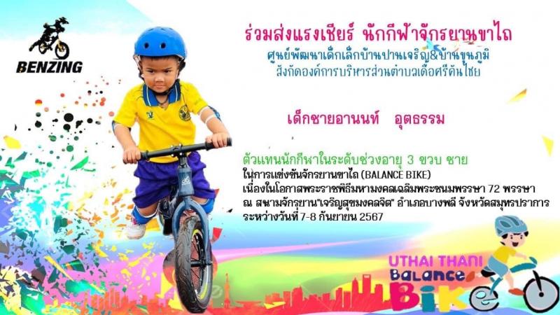 ร่วมกันส่งกำลังใจให้เด็กๆ ศูนย์พัฒนาเด็กเล็กบ้านปานเจริญ และศูนย์พัฒนาเด็กเล็กบ้านขุนภูมิ สังกัดองค์การบริหารส่วนตำบลเดื่อศรีคันไชย เข้าแข่งขันจักรยานขาไถ (Balance Bike) เพื่อเฉลิมพระเกียรติ พระบาทสมเด็จพระเจ้าอยู่หัว เนื่องในโอกาสพระราชพิธีมหามงคลเฉลิมพระชนมพรรษา 6 รอบ 28 กรกฎาคม 2567 แข่งขันระดับประเทศ ณ สนามเจริญสุขมงคลจิต อำเภอบางพลี จังหวัดสมุทรปราการ ระหว่างวันที่ 7-8 กันยายน 2567