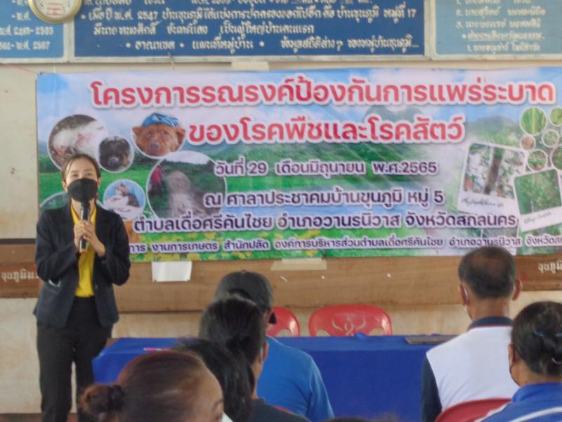 โครงการรณรงค์ป้องกันการแพร่ระบาดของโรคพืชและโรคสัตว์ วันที่ 29 มิถุนายน 2565 ณ ศาลาประชาคมบ้านขุนภูมิ หมู่5