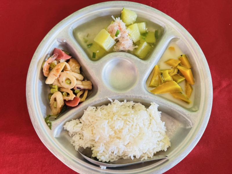 6 มกราคม 2568 คณะกรรมการติดตาม ตรวจสอบ ประเมินผลการดำเนินงานโครงการอาหารกลางวัน ประจำปีงบประมาณ 2568 ภาคเรียนที่ 2/2567 ศูนย์พัฒนาเด็กเล็กบ้านปานเจริญ สังกัด องค์การบริหารส่วนตำบลเดื่อศรีคันไชย เมนูอาหารกลางวัน 6 มกราคม 2568 ข้าวสวย + ผัดกะเพราทะเล + แกงจืดแตงกวายัดใส้ + บวชฟักทอง