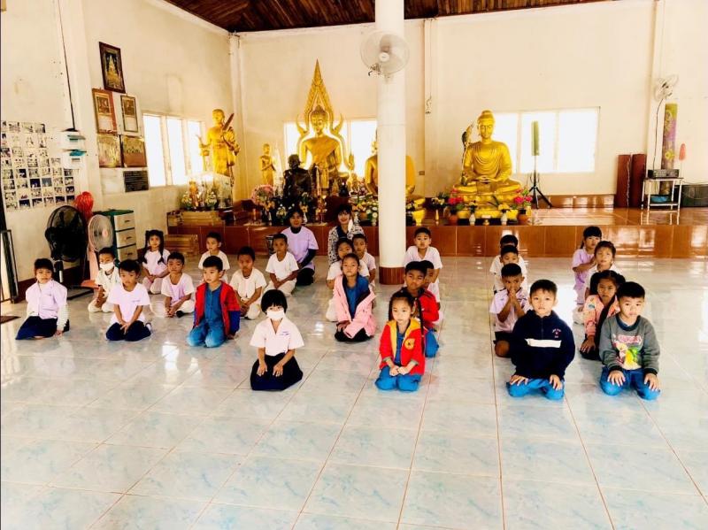 กิจกรรมการส่งเสริมคุณธรรมจริยธรรม โดยการพาเด็กไปสวดมนต์ไ หว้พระ ฟังพระเทศน์ ฟังธรรม และนั่งสมาธิ ณ วัดป่าวงศ์พนาวัลย์