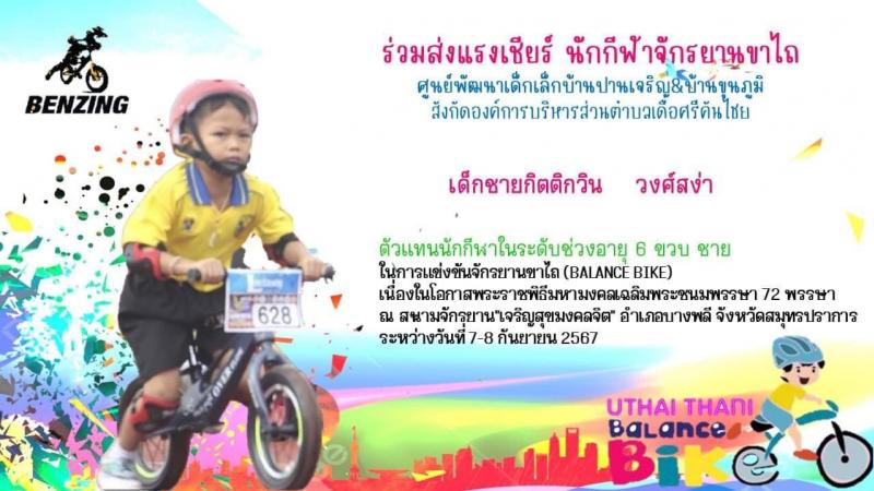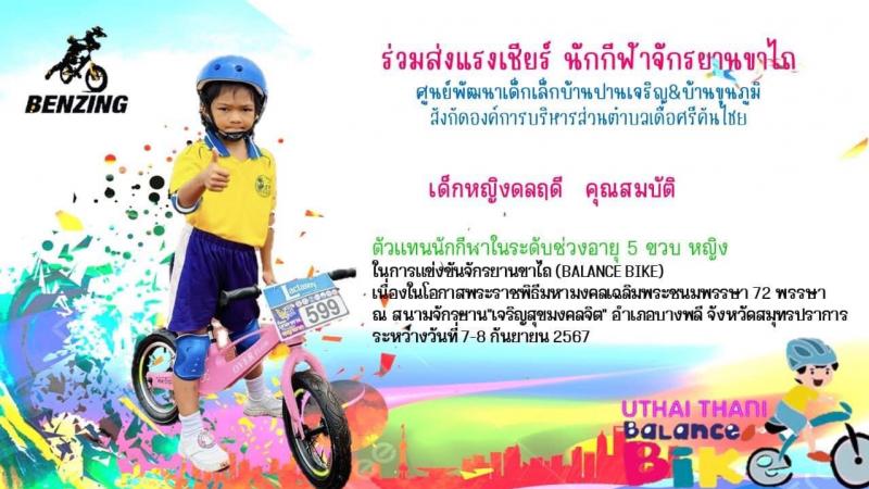ร่วมกันส่งกำลังใจให้เด็กๆ ศูนย์พัฒนาเด็กเล็กบ้านปานเจริญ และศูนย์พัฒนาเด็กเล็กบ้านขุนภูมิ สังกัดองค์การบริหารส่วนตำบลเดื่อศรีคันไชย เข้าแข่งขันจักรยานขาไถ (Balance Bike) เพื่อเฉลิมพระเกียรติ พระบาทสมเด็จพระเจ้าอยู่หัว เนื่องในโอกาสพระราชพิธีมหามงคลเฉลิมพระชนมพรรษา 6 รอบ 28 กรกฎาคม 2567 แข่งขันระดับประเทศ ณ สนามเจริญสุขมงคลจิต อำเภอบางพลี จังหวัดสมุทรปราการ ระหว่างวันที่ 7-8 กันยายน 2567