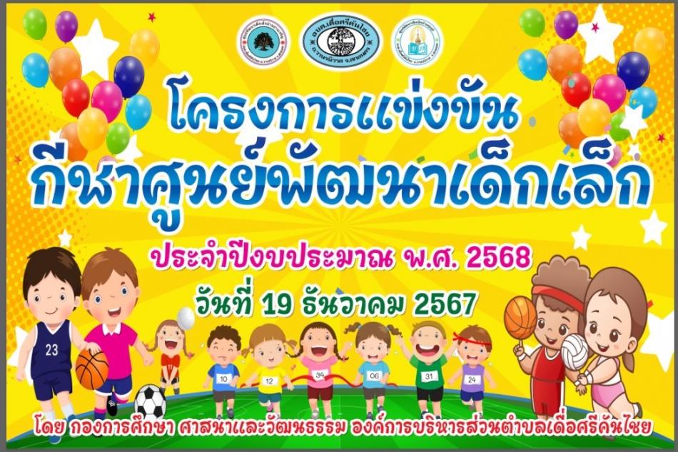 เนื่องด้วยศูนย์พัฒนาเด็กเล็ก 2 แห่ง ????ศูนย์พัฒนาเด็กเล็กบ้านปานเจริญ ????ศูนย์พัฒนาเด็กเล็กบ้านขุนภูมิ สังกัด องค์การบริหารส่วนตําบลเดื่อศรีคันไชย จะจัดโครงการแข่งขันกีฬาศูนย์พัฒนาเด็กเล็ก ประจำปีงบประมาณ 2568... [17 ธันวาคม 2567]