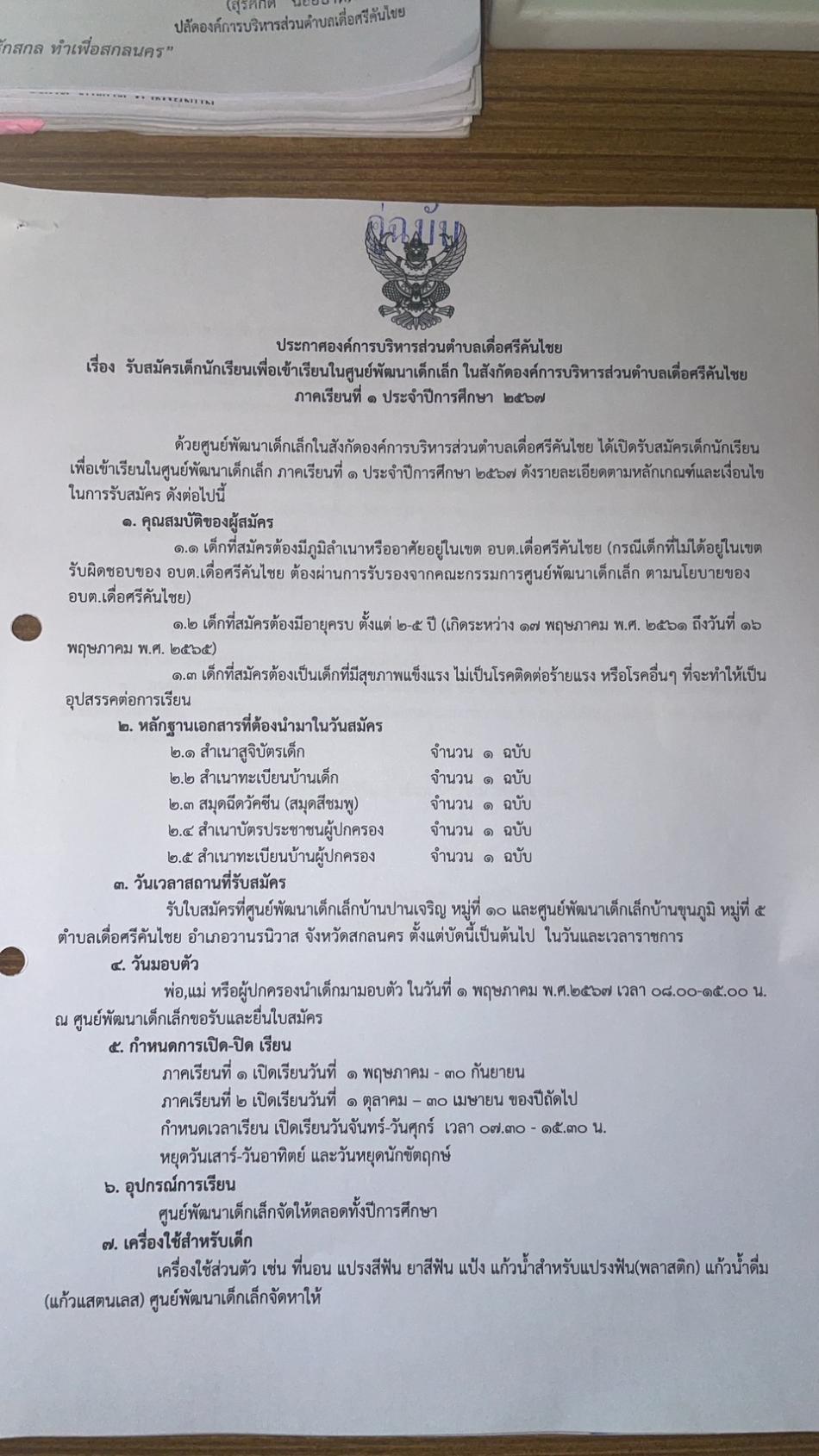 ประกาศการรับสมัครนักเรียน ภาคเรียนที่ 1 ประจำปีการศึกษา 2567 เริ่มรับสมัครเด็กนักเรียนแล้วนะคะ ตั้งแต่วันนี้ เป็นต้นไป อายุระหว่าง 2-5 ขวบ สมัครได้ทั้ง 2 ศูนย์ ตามโซนใกล้บ้านเลยนะค่ะ 1. ศูนย์พัฒนาเด็กเล็กบ้านปานเจริญ... [19 มกราคม 2567]